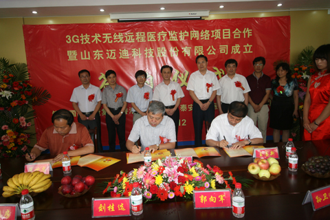 8月12日,3G技術(shù)無線遠程醫(yī)療監(jiān)護網(wǎng)絡(luò)項目合作簽約暨山東邁迪科技股份有限公司成立儀式在高新區(qū)舉行。