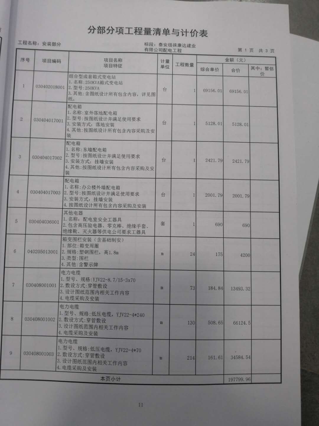 一、項(xiàng)目名稱:泰安徂徠康達(dá)建業(yè)有限公司配電工程