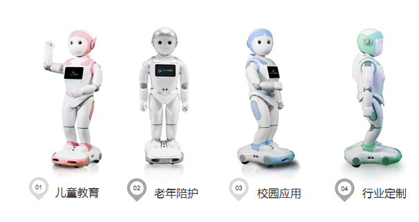 產(chǎn)品應(yīng)用于兒童教育、老年陪護(hù)、校園應(yīng)用多個(gè)領(lǐng)域,亦可根據(jù)行業(yè)特點(diǎn)進(jìn)行定制。陪伴型機(jī)器人“i寶”身高1.03米,重量12.5kg,全身有24個(gè)活動(dòng)自由度,搭載定制Android系統(tǒng),配有6英寸LCD觸摸屏輔助交互,全身共擁有18個(gè)傳感器,可透過視覺、聲源定位響應(yīng)方向。機(jī)器人將人工智能與融合型終端結(jié)合,可為3-12歲兒童提供教育、娛樂、交友、家長監(jiān)護(hù)、特色編程等多種功能,并可進(jìn)行深層次互動(dòng)。