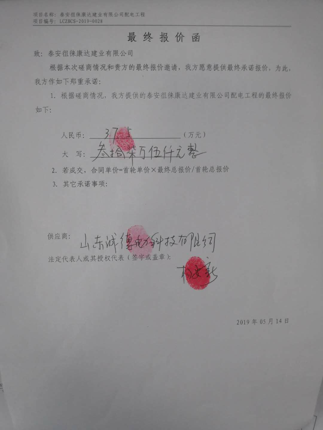 泰安徂徠康達(dá)建業(yè)有限公司配電工程成交結(jié)果公告